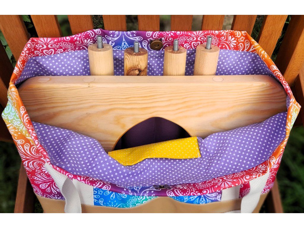 Uvnitř jsou kapsy k uložení demontovatelných nožek a také kapsa na drobnosti ( klíče, mobil, doklady, atd.)